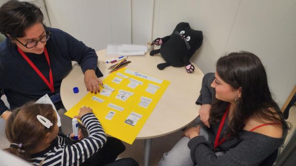 During the 30-minute lesson, parents and children played games with key unit vocabulary cards and pictures and then created a poster using the same materials. There was a lovely buzz of chatter in all the languages in all the mini classes and everyone was full of smiles and laughter (as well as learning, of course).
