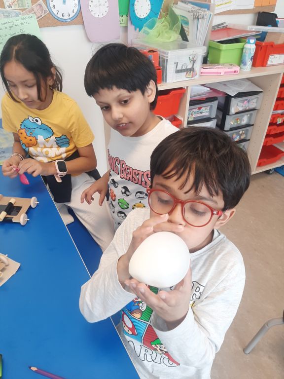 In Language, students wrote an explanatory text using the Talk for Writing model to describe how their simple machines worked and how they would solve a real-world problem. First, they orally rehearsed their ideas before writing, ensuring a clear introduction and logical sequence. They used key vocabulary like force, motion, friction, and effort to explain the function of their machines. Students worked to describe the operation of their machines, how forces were involved, and how the machines reduced effort or changed direction. They concluded by reflecting on the real-world applications of their designs. Through this process, students developed their communication skills and deepened their understanding of how simple machines solve everyday problems.