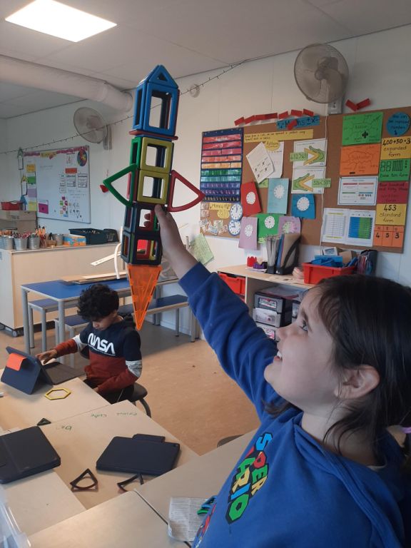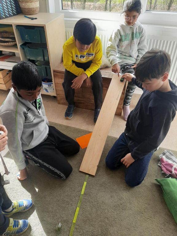 In our standalone Mathematics unit, students explored 2D and 3D shapes using terms like sides, edges, vertices, and angles. They described and analyzsd shapes such as triangles, rectangles, circles, cylinders, and spheres, learning how these shapes appear in simple machines. For example, students noticed how circular wheels help machines move smoothly and how triangular ramps help lift objects. The students’ ability to connect geometry with simple machines helped them develop critical thinking skills, as they questioned how the shapes and angles of their designs would affect the function of their machines. In addition, students learned about fractions, understanding how to divide objects into equal parts, which helped them think mathematically about effort and load distribution in their machines.
