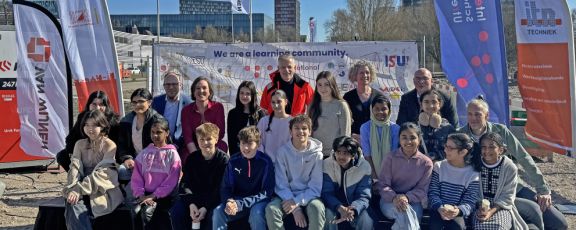 The big moment, was the reveal of a specially created banner by Barzah, Hamsika (students Grade 6) Lihi and Michelle (students Grade 8). On this banner you can see multiple drawings from students, introducing our school community to the new neighbours at Utrecht Science Park. Students who made the best drawings were invited to the celebrations at Utrecht Science Park.