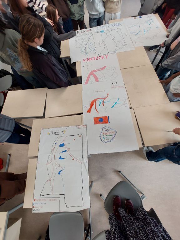 Students were divided into groups and assigned a State, and they needed to do research on the Underground Railroad escape routes for each State. We then aligned the States on the tables so that we could see how the routes connected from one State to the next. The grade 8s practiced their research, organisational, and collaboration skills for this task.