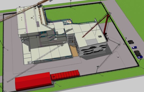 The red construction site office is at the Cambridgelaan. If you look at the pictures from left to right, you will get an overview of the different phases of the construction. The low-rise part of the building is at the backside of the new campus facing the playing fields. the high-rise part of the building is facing the Cambridgelaan. This is where the entrance to the new campus will be situated.