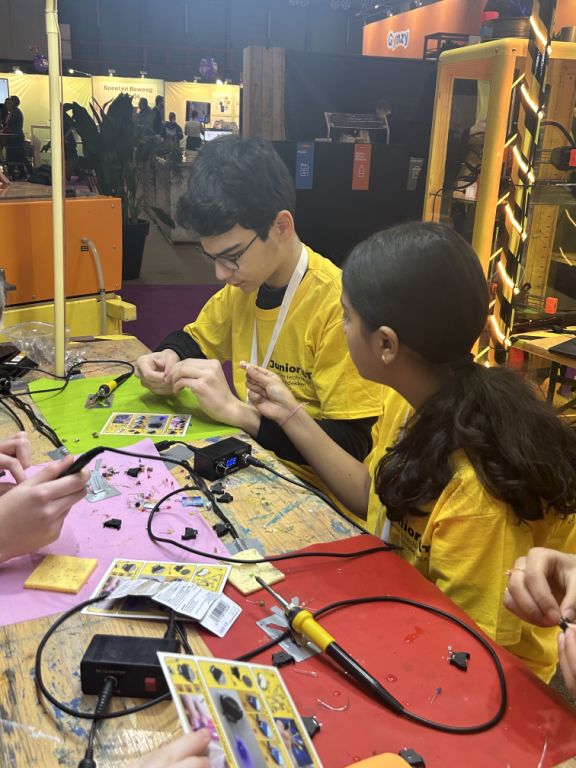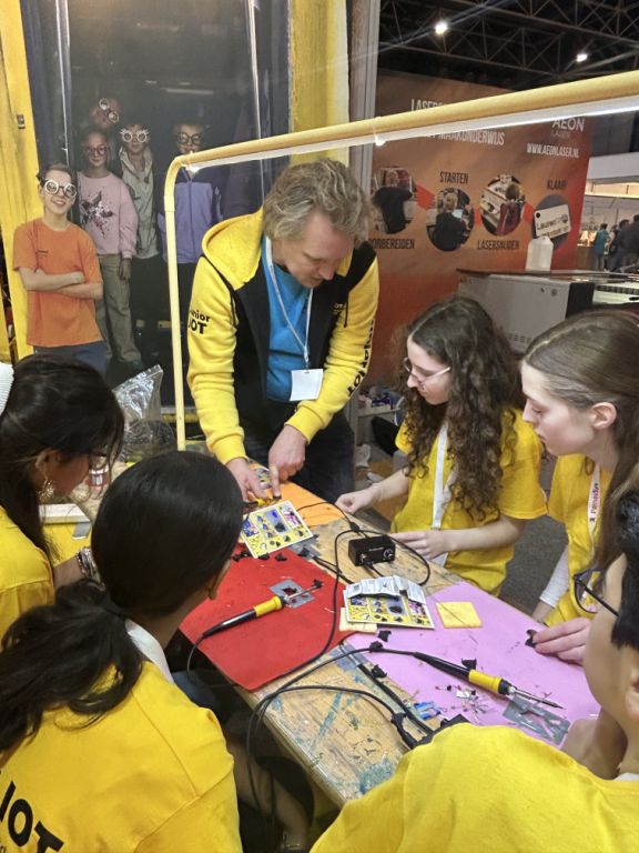 Her Majesty Queen Máxima opened the NOT fair 2025, which highlighted key themes like technology, craftsmanship, citizenship, mental well-being, and AI. As honorary chair of the MIND Us Foundation, she emphasised the importance of young people's mental health in education. She also supported learning through making in education and visited the Junior IOT stand, where our students had the incredible opportunity to experience her royal support.