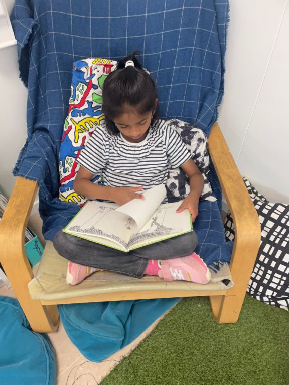 Children’s reading skills actually begin with their listening skills. Did you know when you read a book to your child you are improving their reading skills? They are picking up on literature structures, learning how to comprehend ideas and hearing rich vocabulary just by listening. In the early years, this looks like our daily read alouds where students make connections and inquire into new words that supports them in their reading journeys.